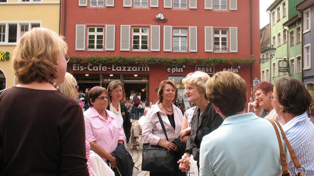 Der diesjähriger Clubausflug führte uns nach Freiburg in die frühere Heimatstadt unserer Präsidentin. Nach einer Fahrt durch den schönen Schwarzwald erreichten wir Freiburg bei strahlendem Sonnenschein. Dort wurden wir von den Freundinnen Frau Volk und Frau Burkhardt vom IWC Freiburg erwartet. Frau Volk erklärte uns sehr lebhaft und eindrucksvoll die Geschichte Freiburgs und führte uns anschließend durch die Altstadt mit ihren beeindruckenden Häusern ( z.B. neues Rathaus, altes Rathaus aus dem 16. Jh., Haus zum Walfisch, erbaut 1516).